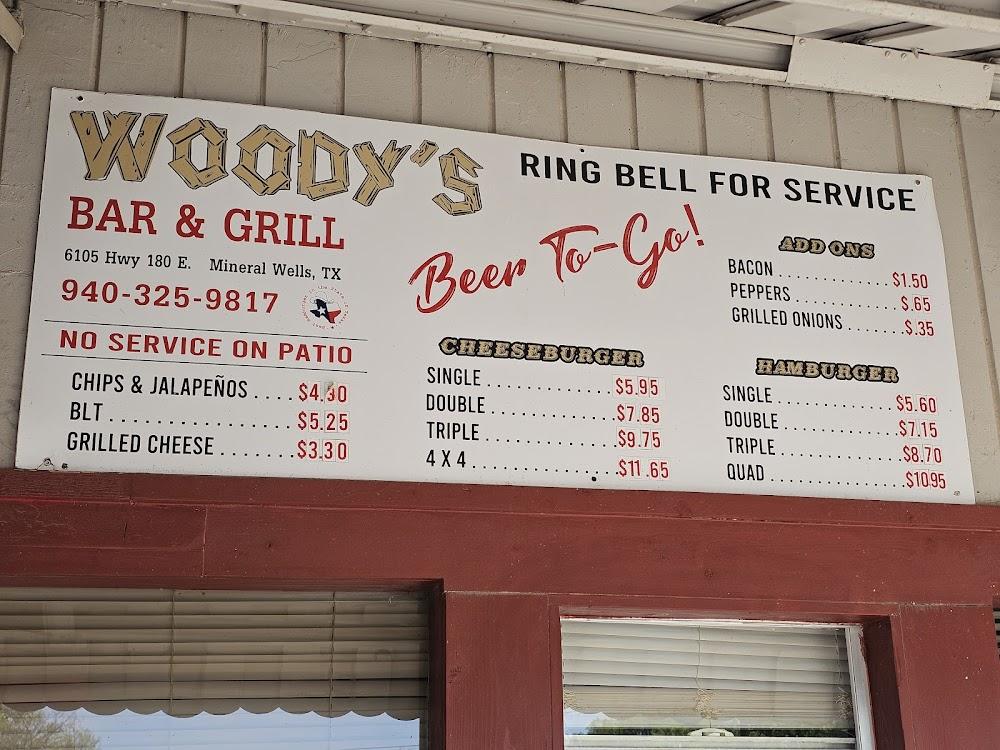 Welcome to Woody's Bar & Grill, your go-to destination in Mineral Wells for delicious eats and a vibrant atmosphere! Located at 6105 US-180, we specialize in mouthwatering grilled dishes, scrumptious cheeseburgers, and refreshing beers. Enjoy our casual ambiance, perfect for solo diners, groups, or tourists looking to unwind. We offer quick service, happy hour drink specials, and facilities for easy accessibility. Join us for a game of shuffleboard or lounge with friends while savoring our famous fried jalapenos. Whether you're dining in, taking out, or enjoying delivery, Woody's is the spot for great food and fun!