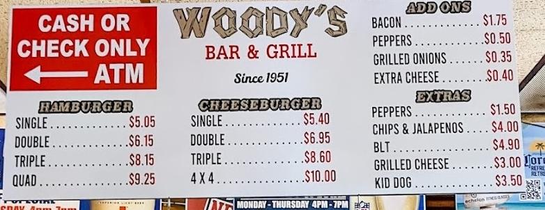 Woody's menu centers around classic comfort food. Burgers lead the charge, but offerings include grilled cheese, BLT, and kid-friendly hot dogs. The savory elements shine with fresh ingredients. Chips and jalapeños serve as the only side options, simplifying the meal.